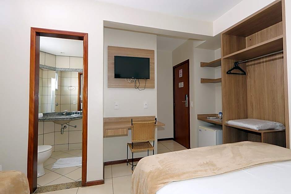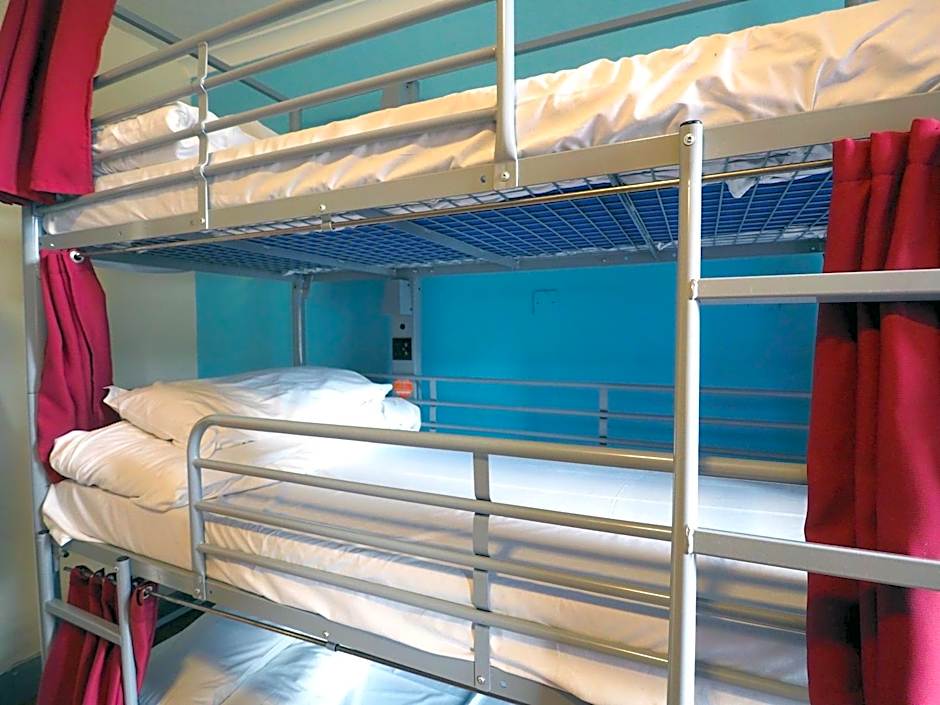 A spacious dormitory room with shared external shower and toilet facilities.