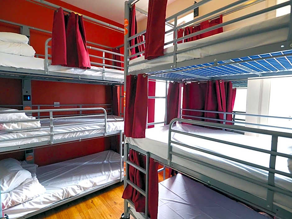 A spacious dormitory room with shared external shower and toilet facilities.